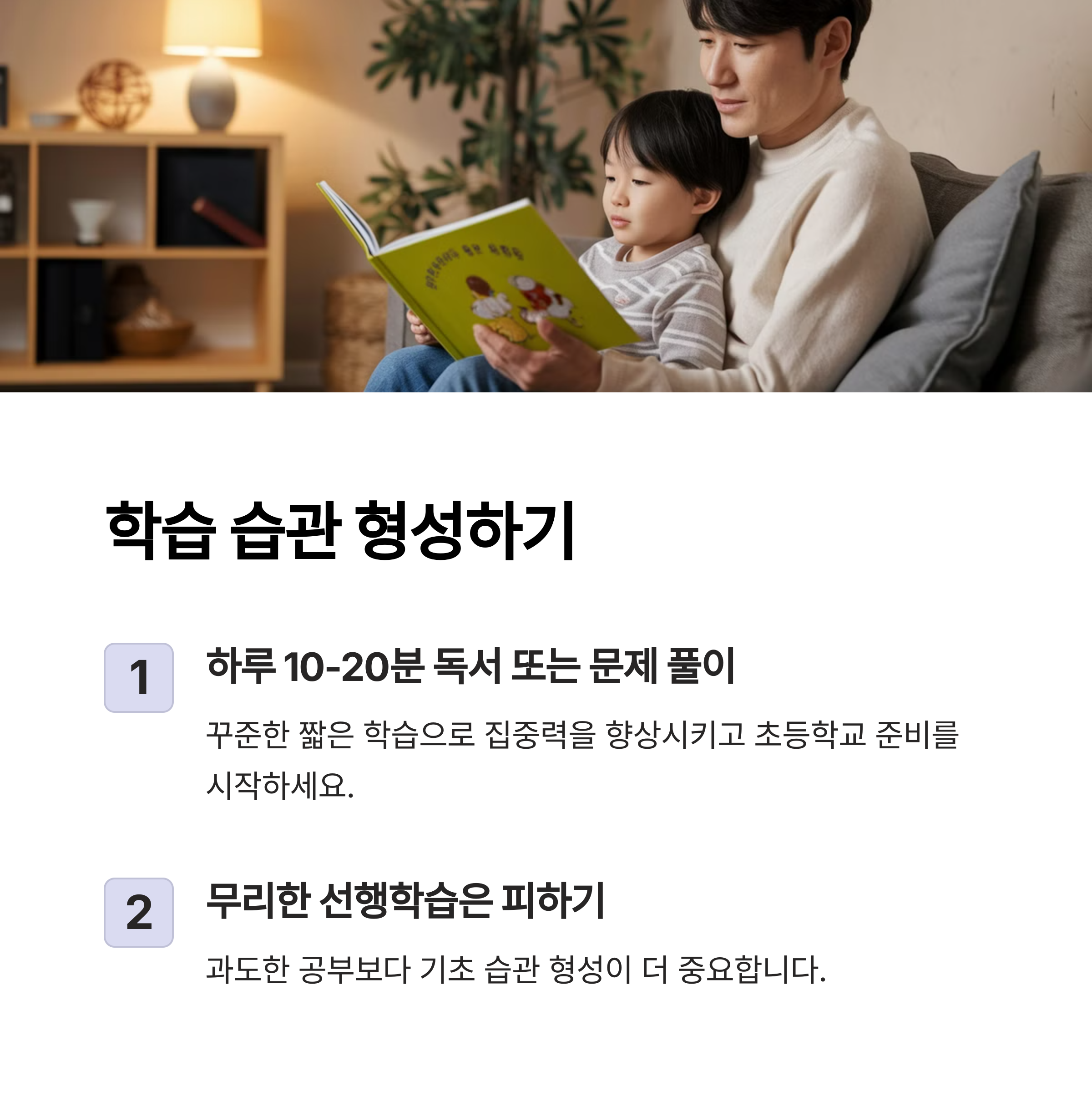 학습 습관 하루 10~20분 집중 학습, 독서 습관 기르기