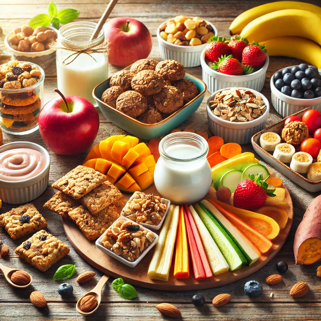 4. 채소 스틱과 홈메이드 딥핑 소스 당근, 오이, 파프리카 등을 요거트 소스에 찍어 먹으면 영양을 균형 있게 채울 수 있습니다. 준비물은 당근, 오이, 파프리카, 플레인 요거트 1컵, 꿀 1작은술, 레몬즙 1작은술입니다. 요거트에 꿀과 레몬즙을 섞어 소스를 만들고, 채소를 스틱 모양으로 썰어 함께 제공하면 완성됩니다.
