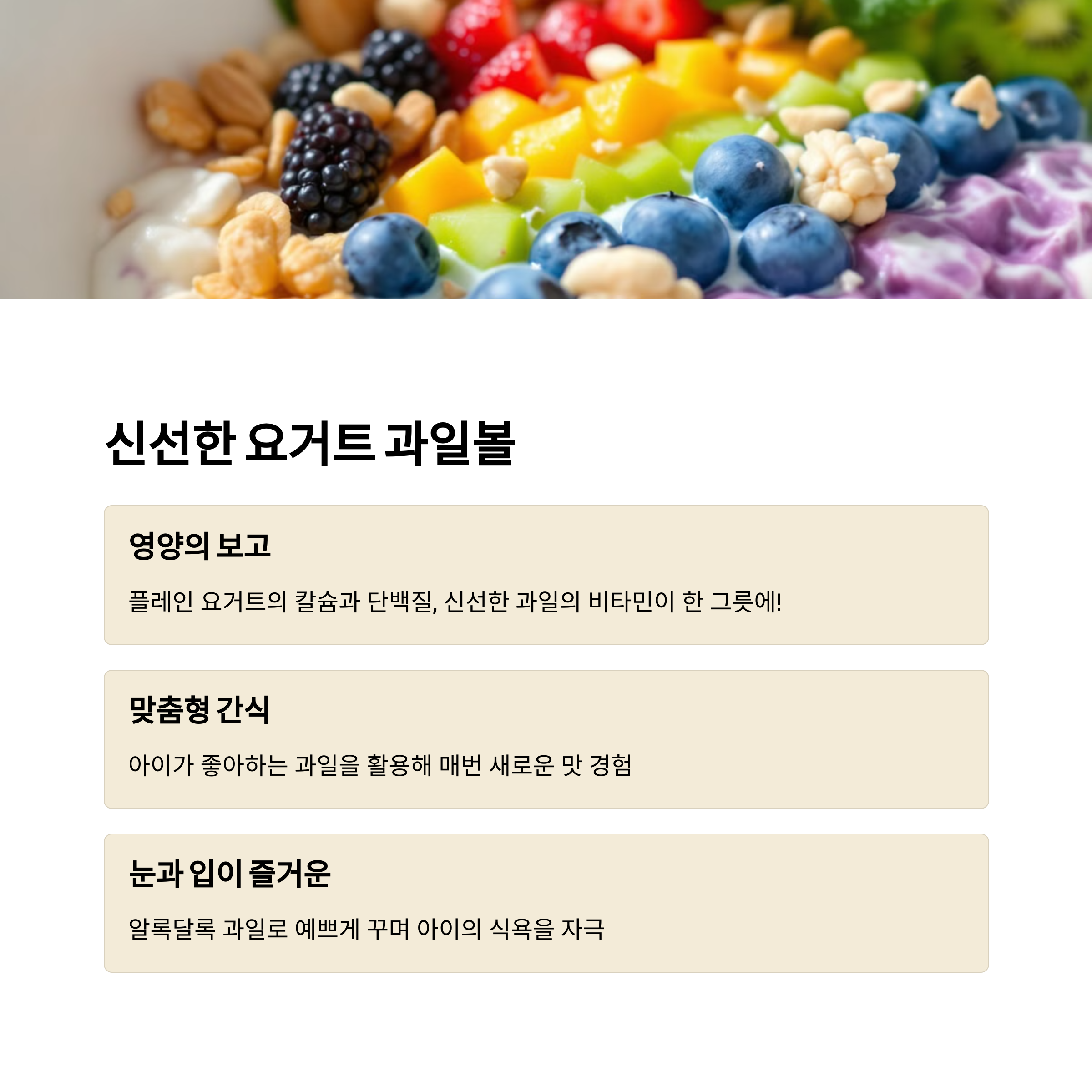 건강하고 맛있는 간식으로 아이의 영양을 채워주세요!