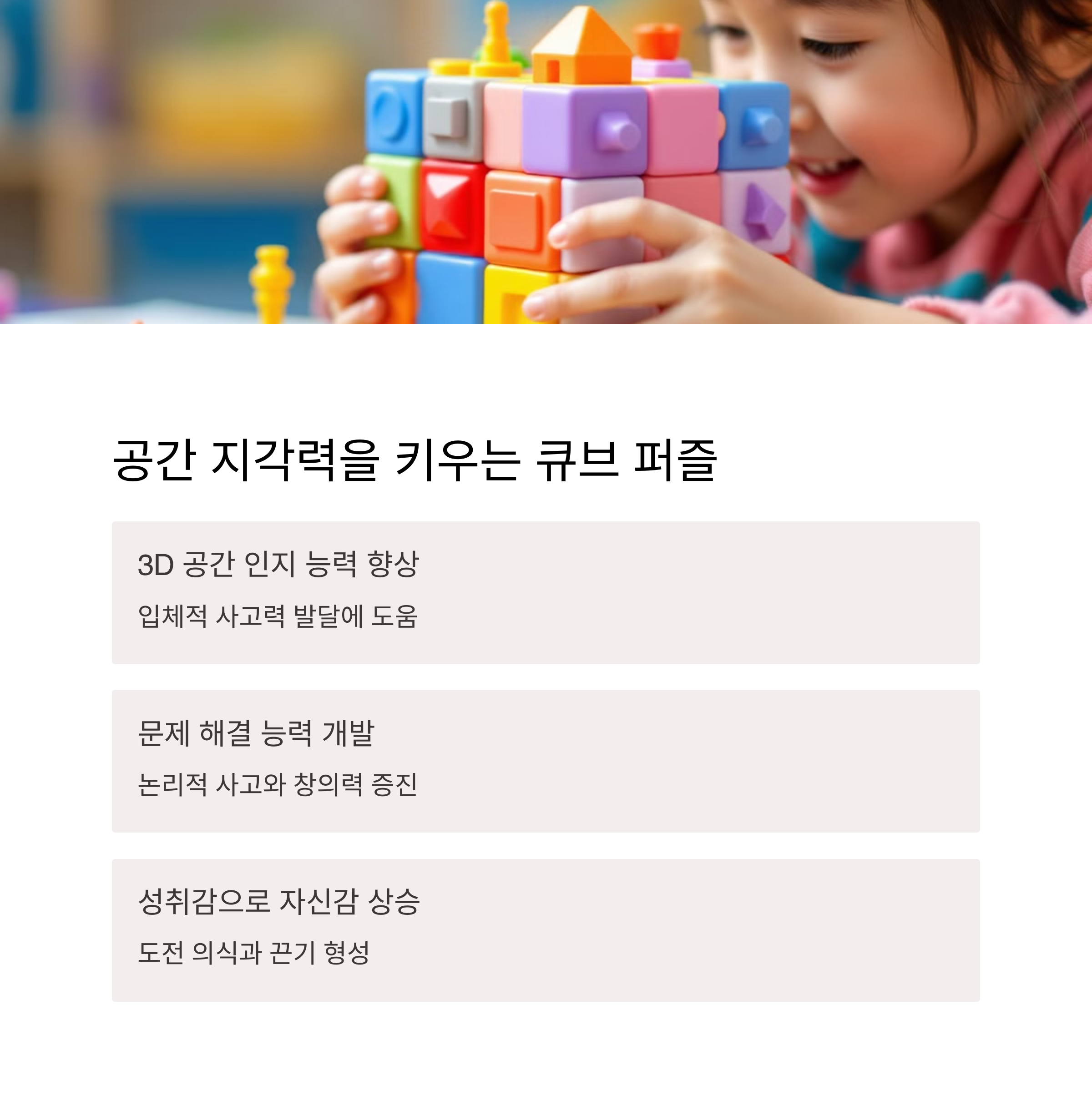 | 사고력, 판단력, 논리적 사고력 향상에 효과적입니다. | 게임을 통한 반복적 몰입은 인지 발달을 자극합니다. | 다양한 감정을 구분하고 스스로 조절할 수 있게 됩니다. |