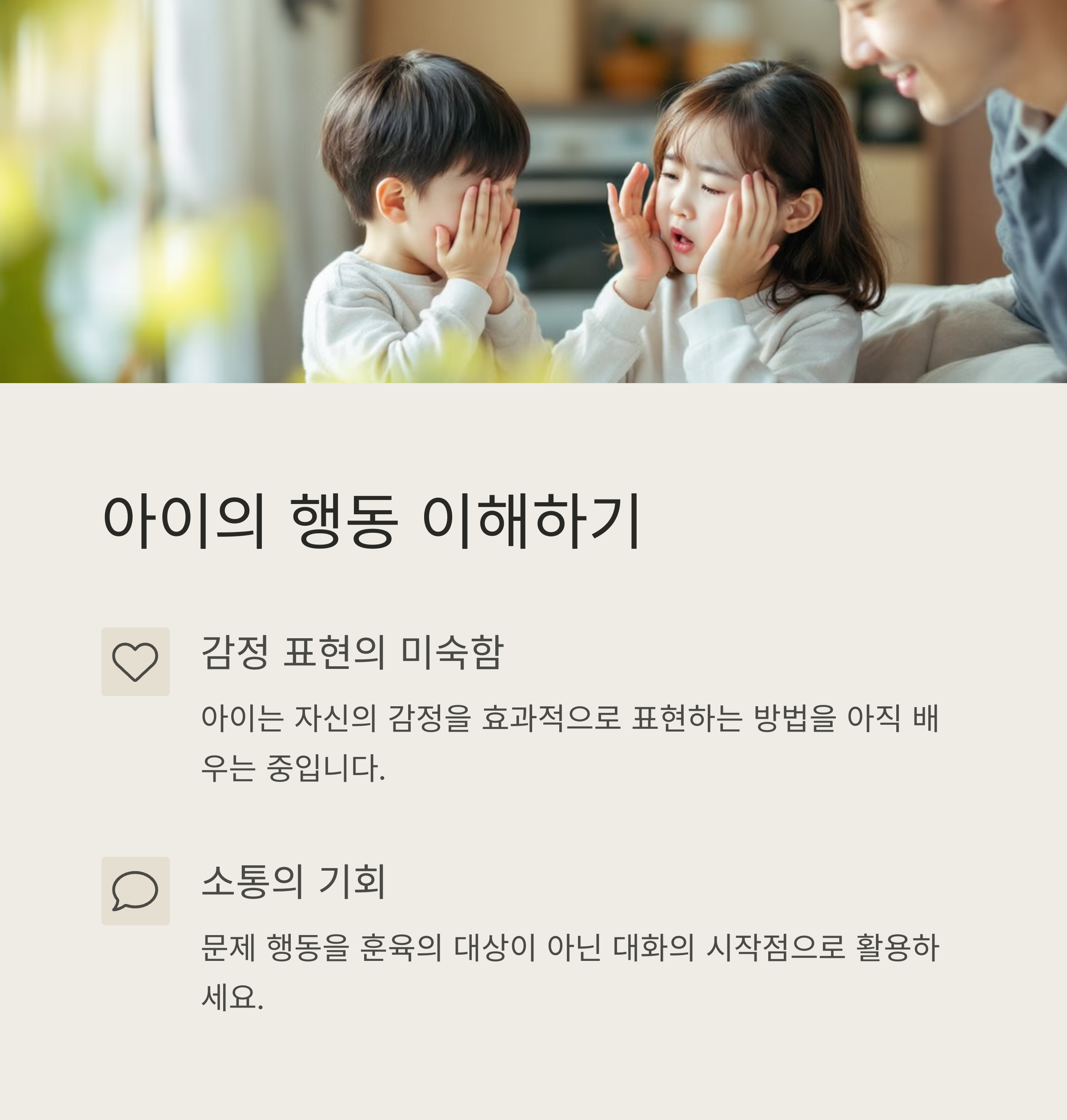 설명과 약속을 기반으로 차분하게 대응해요. 상황마다 다른 반응은 혼란을 줘요. 먼저 숨을 고르고 감정을 조절하는 게 중요해요.