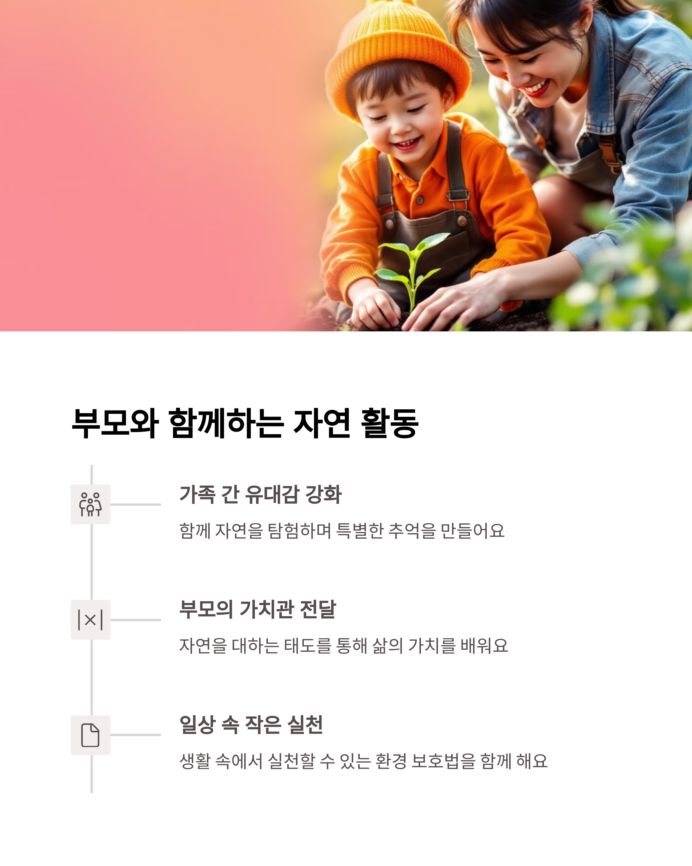 아이와 자연 속에서의 특별한 경험이 있으신가요? 또는 생태 교육에 대해 궁금한 점이 있다면 댓글로 함께 나눠주세요. 여러분의 경험과 이야기가 다른 분들에게 큰 도움이 됩니다.