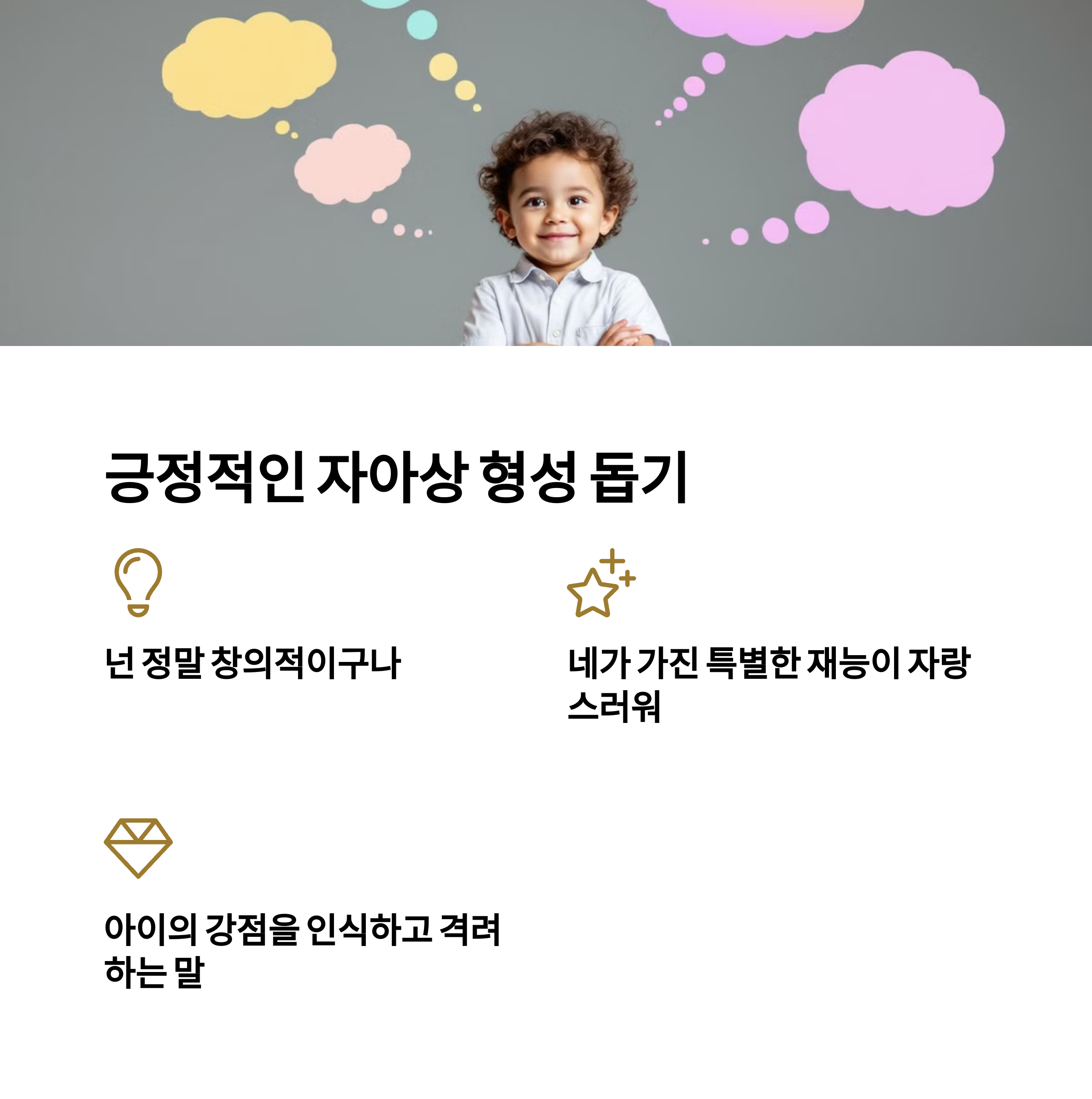 오늘 아이에게 어떤 말을 건넸나요? 혹시 무심코 내뱉은 말이 아이의 마음을 닫게 하지는 않았나요? 이제부터라도 의식적으로, 따뜻하고 긍정적인 언어를 선택해보세요. 그 한마디가 아이의 내면에 씨앗이 되어, 삶 전체를 아름답게 이끌어줄 나무로 자랄 것입니다.