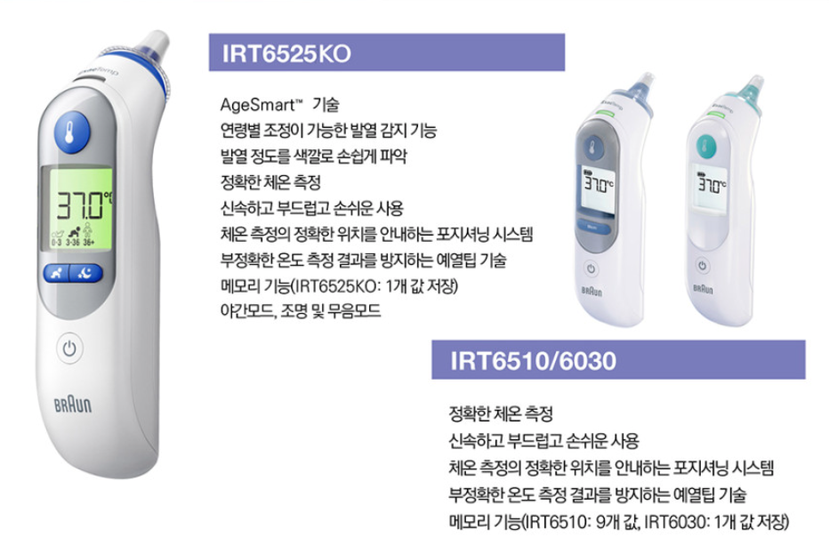 가장 많은 추천을 받는 제품은 바로 브라운 IRT6510입니다. 이 제품은 국내외 병원에서 널리 사용되고 있을 만큼 신뢰도가 높습니다. 귀 적외선 방식으로 1초 만에 체온 측정이 가능하고, 측정 버튼 한 번으로 결과를 확인할 수 있어 아이가 몸을 움직이더라도 수월하게 측정할 수 있습니다.