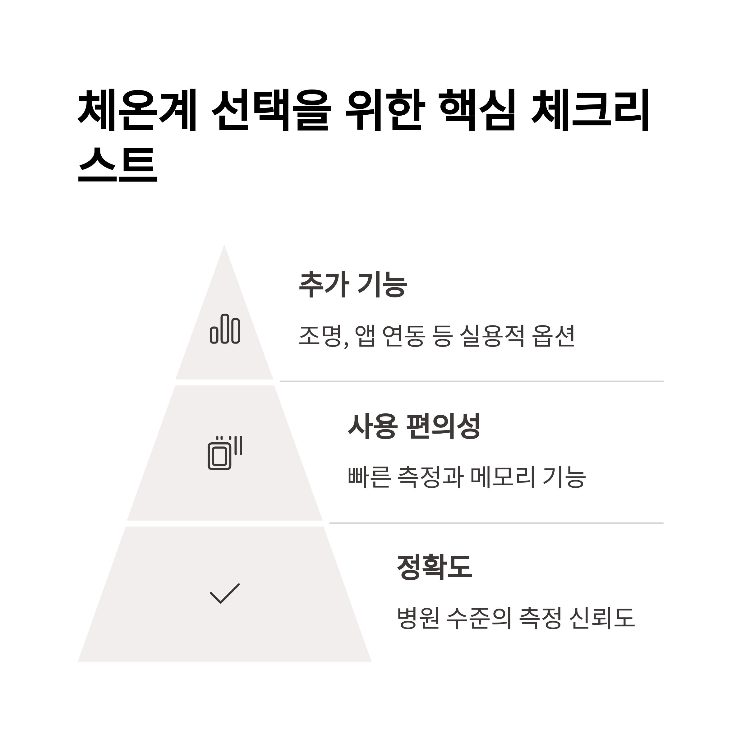 아기 체온계를 선택할 때 가장 중요한 것은 단연 정확성입니다. 측정값이 일관되지 않거나 오차가 크면 적절한 대처 시점을 놓칠 수 있기 때문입니다. 다음은 제품을 고를 때 고려해야 할 핵심 요소들입니다.